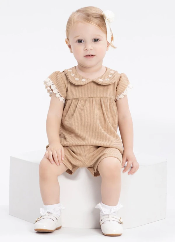 Alakazoo - Conjunto Bebê com Blusa Bordada e Shorts Bege