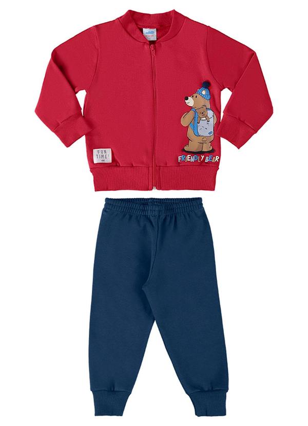 Marlan - Conjunto Bebê Jaqueta e Calça Urso Baby Vermelho