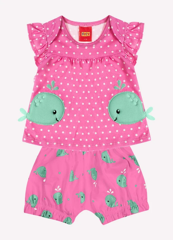 Kyly - Conjunto Bebê Menina Baleias Rosa