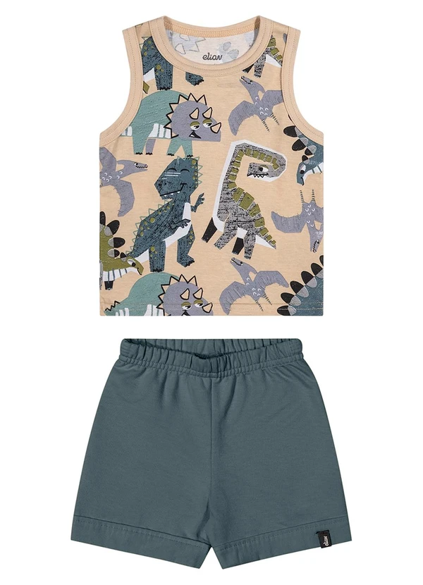 Elian - Conjunto Bebê Menino Dino Curto Marrom