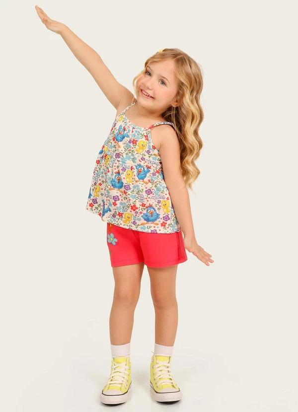 Galinha Pintadinha - Conjunto Blusa Alcinha Shorts MoletinhoBranco