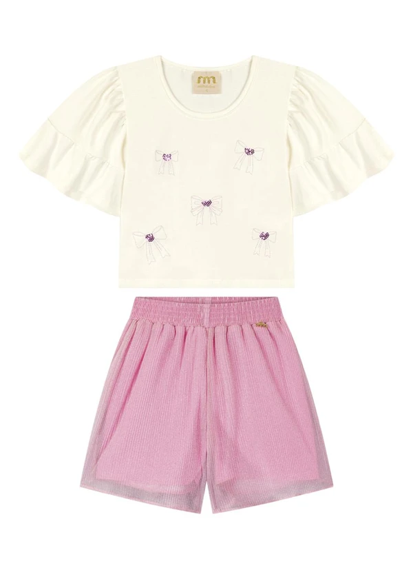 Milli e Nina - Conjunto Blusa e Shorts em Tule Bege
