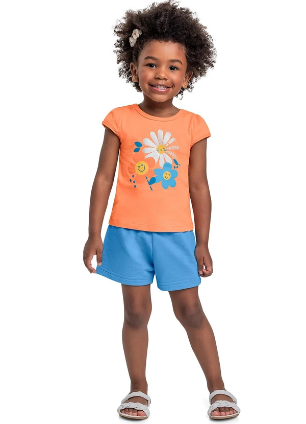 Bee Loop - Conjunto Blusa Flor e Short Laranja