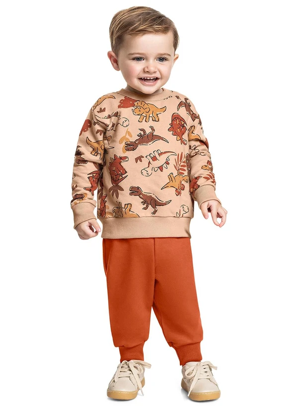Bee Loop - Conjunto Blusão Dinos e Calça Marrom