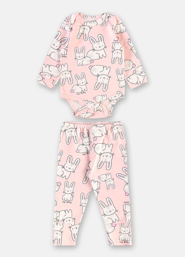 Up Baby - Conjunto Body e Calça Suedine Rosa