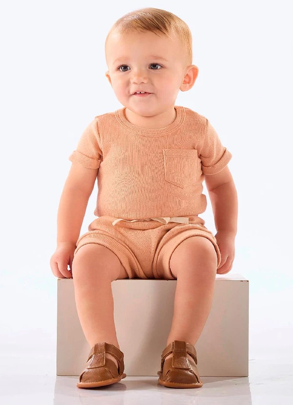 Up Baby - Conjunto Body Short Ribana Nature Branco