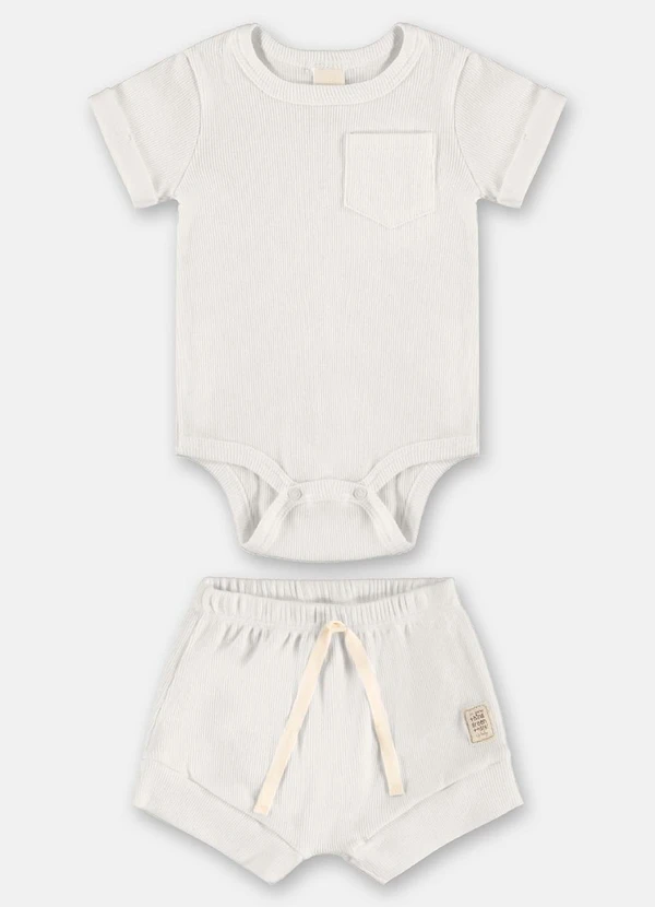 Up Baby - Conjunto Body Short Ribana Nature Up Baby Marrom