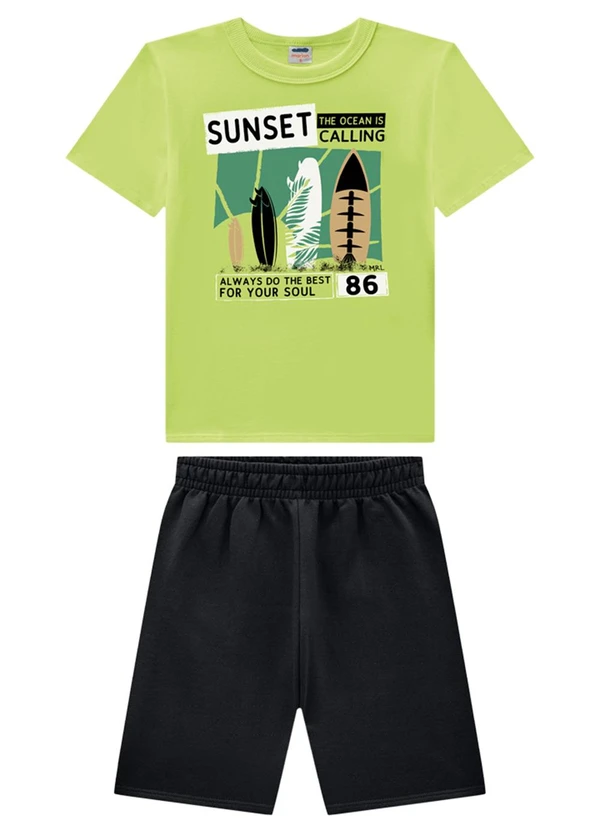 Marlan - Conjunto Camiseta e Bermuda Moletinho Verde