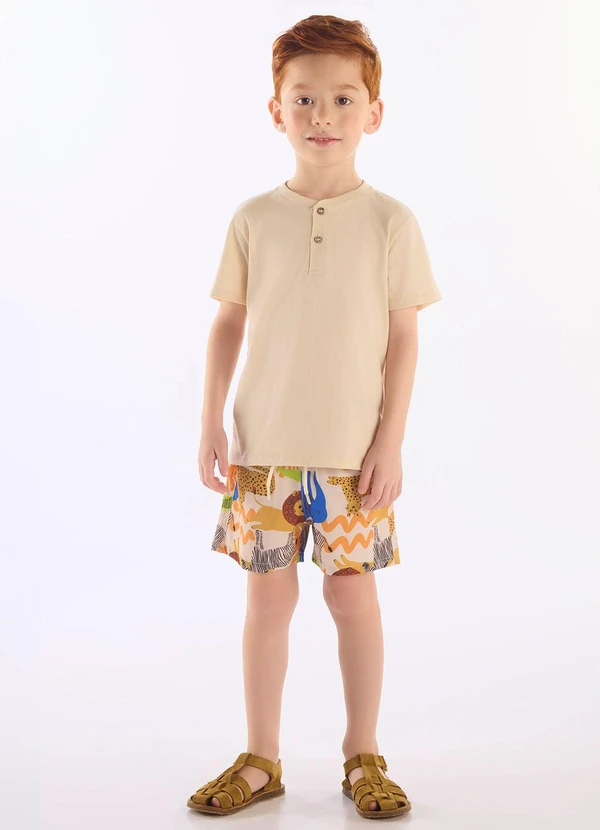 Up Baby - Conjunto Camiseta Short Safári Bege