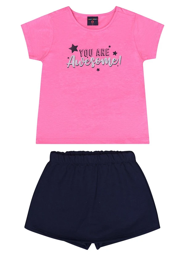 Guloseima - Conjunto com Blusa e Short-Saia Rosa
