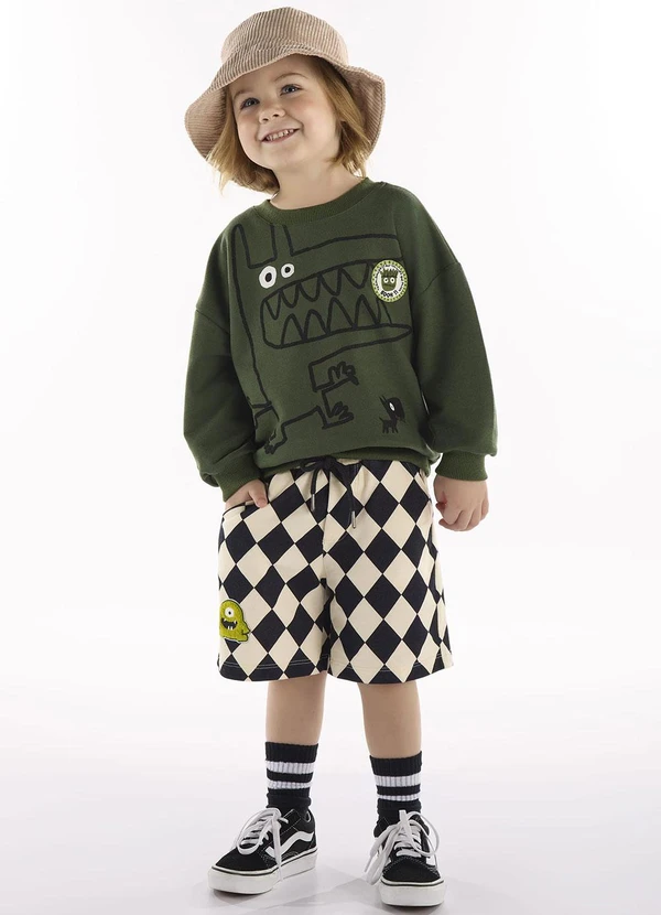 Três e Já - Conjunto com Blusão e Bermuda de Verde