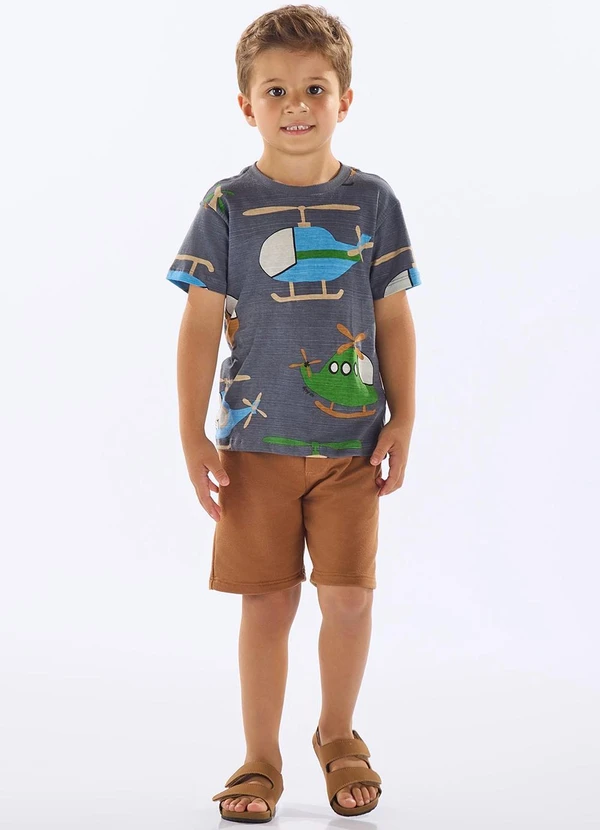 Up Baby - Conjunto com Camiseta e Bermuda Cinza