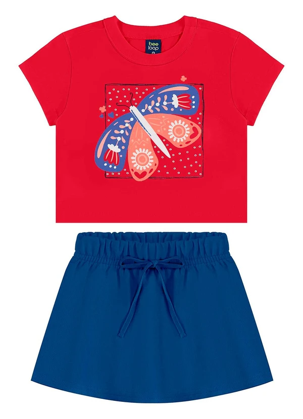 Bee Loop - Conjunto Cropped e Short-Saia Vermelho