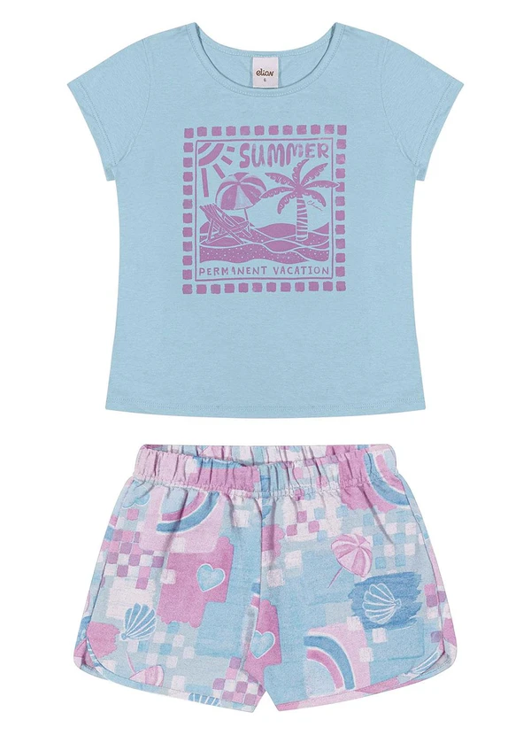 Elian - Conjunto Curto Infantil Menina Verão Azul