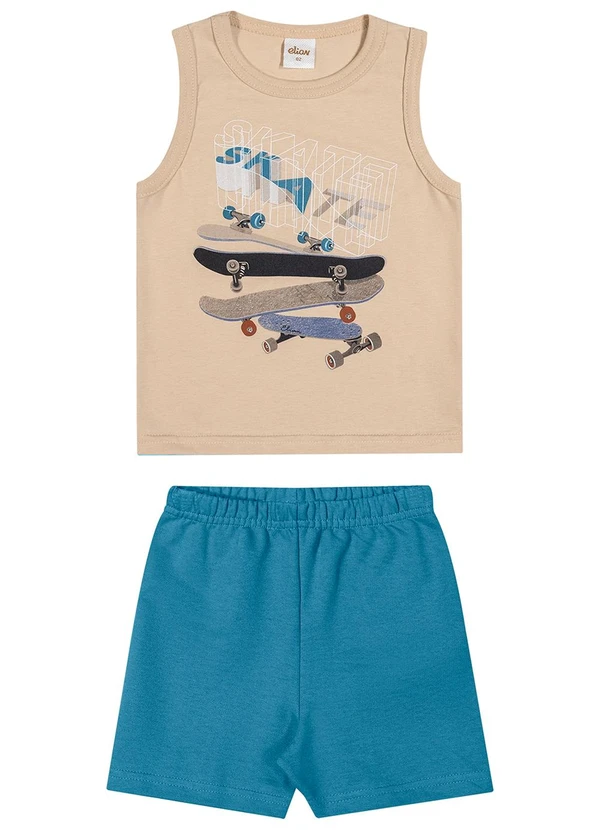 Elian - Conjunto Curto Infantil Menino Estampa Bege