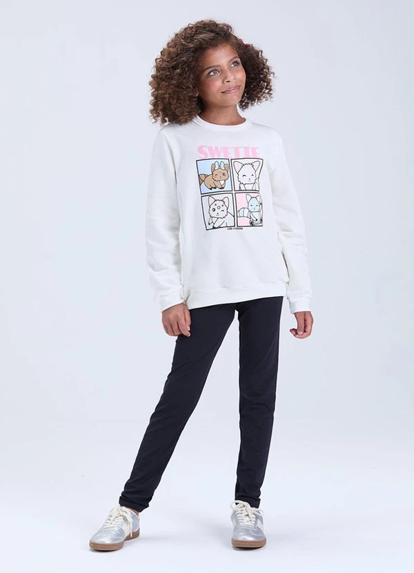 Vida Costeira - Conjunto de Moletom Gatinho Swetie Off White