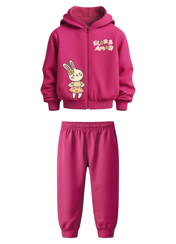 Malwee Kids - Conjunto Flor & Amor em Moletom Rosa