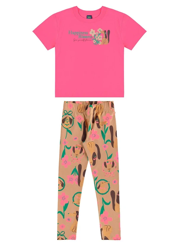 Bee Loop - Conjunto Flores & Focinhos Legging Rosa