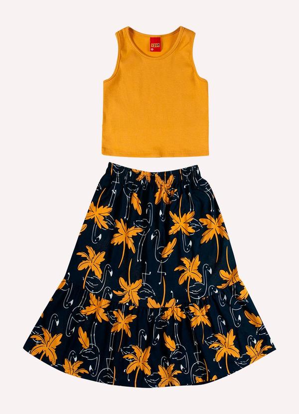 Kyly - Conjunto Infantil Menina Flamingos Amarelo