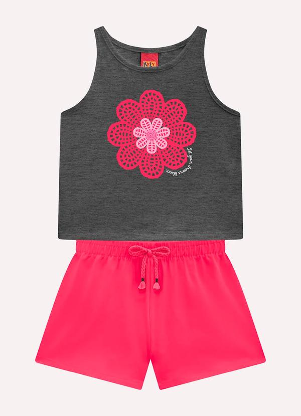 Kyly - Conjunto Infantil Menina Flor Cinza