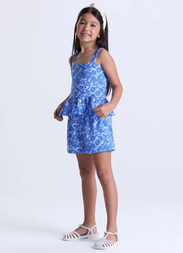 Vida Costeira - Conjunto Infantil Menina Floral Azul