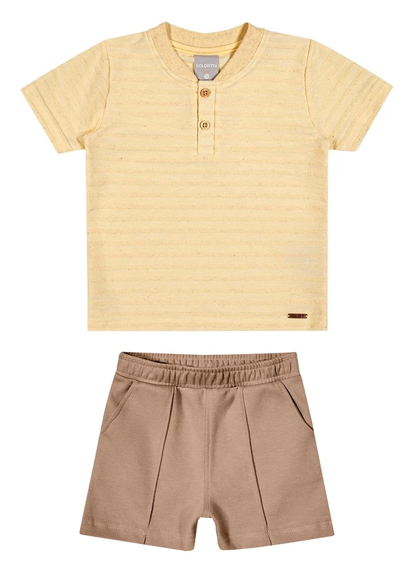 Colorittá - Conjunto Infantil Menino Linho Listrado Amarelo