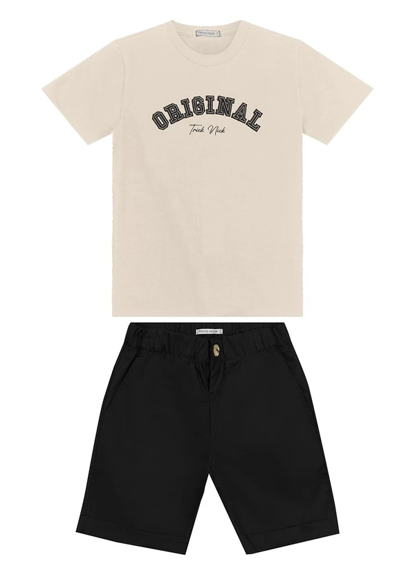 Trick Nick - Conjunto Masculino Camiseta com Bermuda Bege