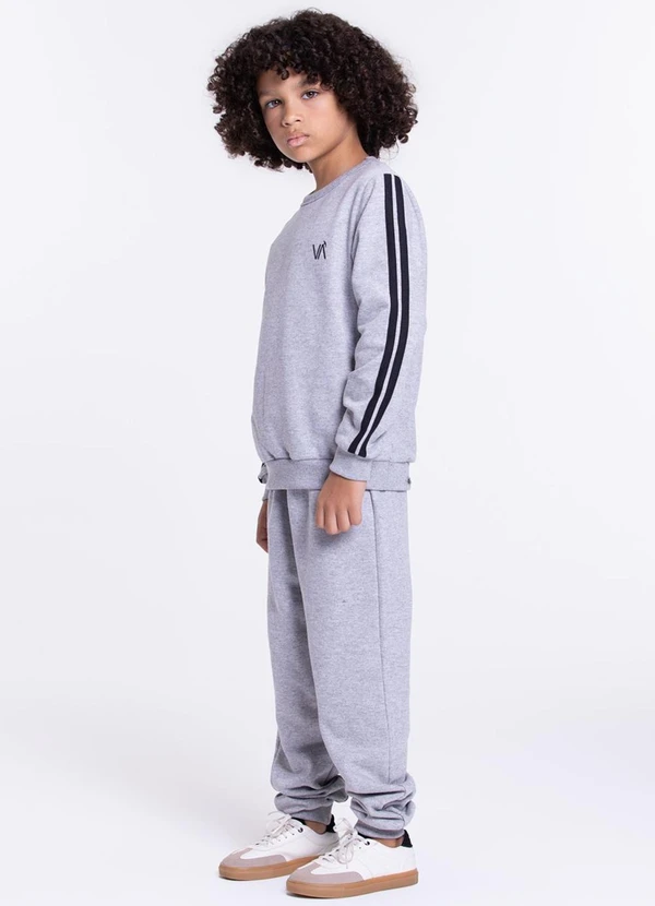 Vida Costeira - Conjunto Moletom Infantil Detalhe Faixas Mescla