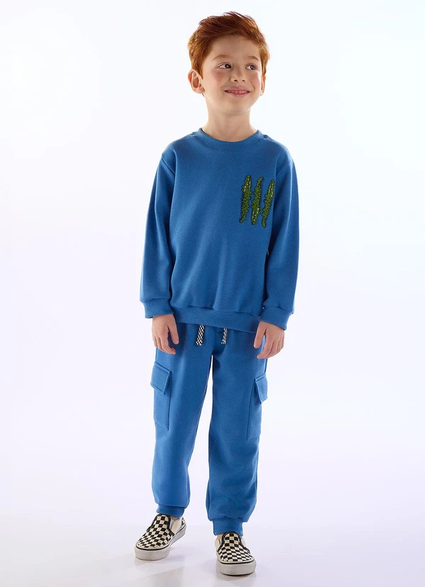 Três e Já - Conjunto Pega-Pega Moletom Azul