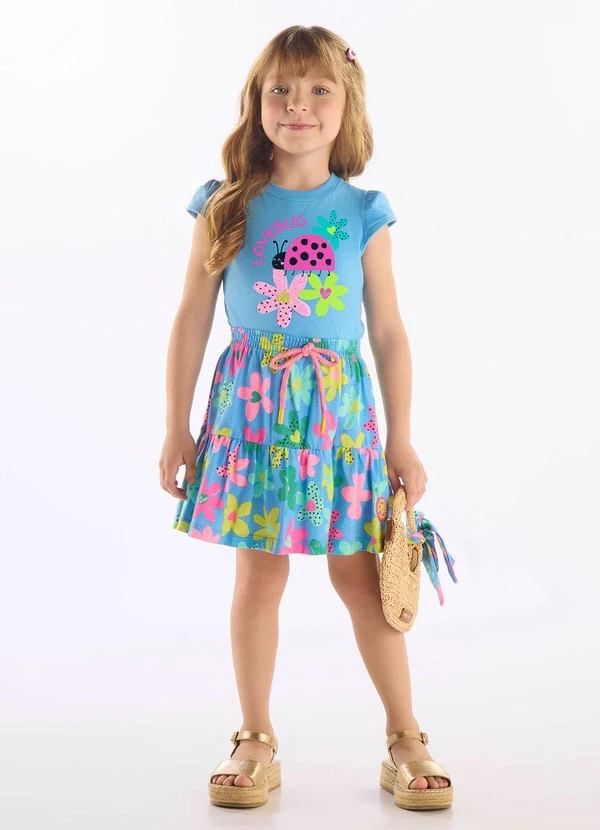 Up Baby - Conjunto Verão Blusa e Saia Florida Azul
