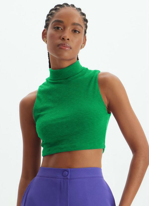 Lança Perfume - Cropped de Malha Canelada sem Manga Gola Alta Verde