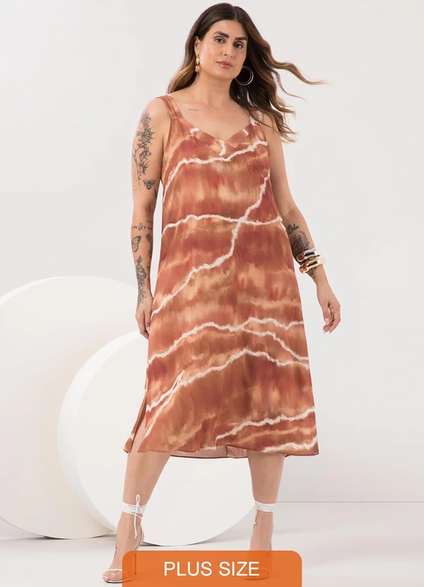 Lunender Mais Mulher - Vestido Midi de Alças com Decote em V Bege