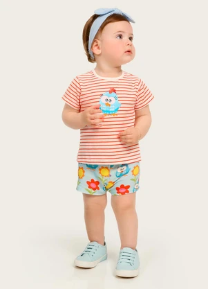 Conjunto Camiseta Shorts Moletinho Laranja