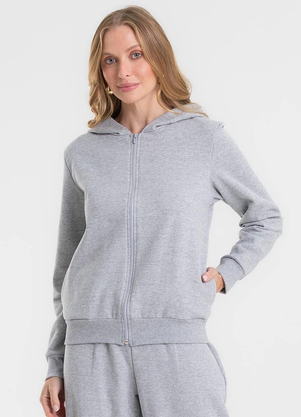 Rovitex - Jaqueta Básica Moletom Peluciado Cinza