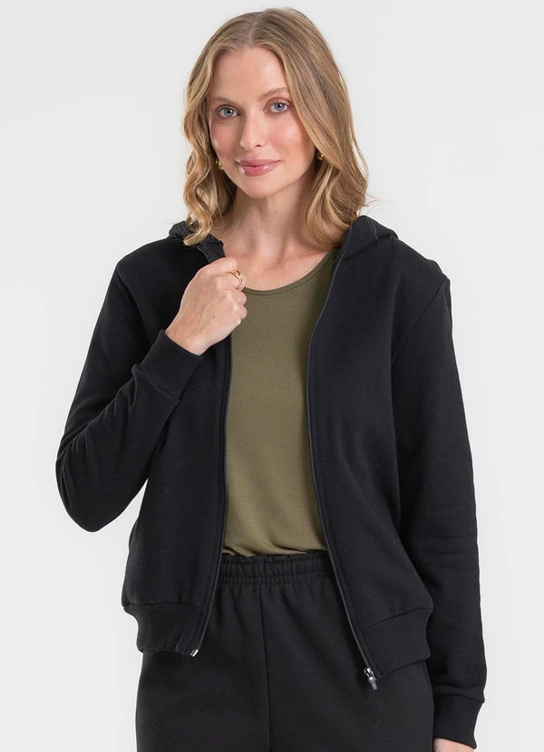 Rovitex - Jaqueta Básica Moletom Peluciado Preto
