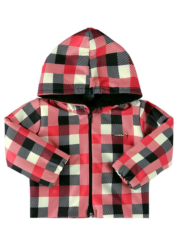 Marlan - Jaqueta Molecotton Xadrez e Pelo Sherpa Vermelho