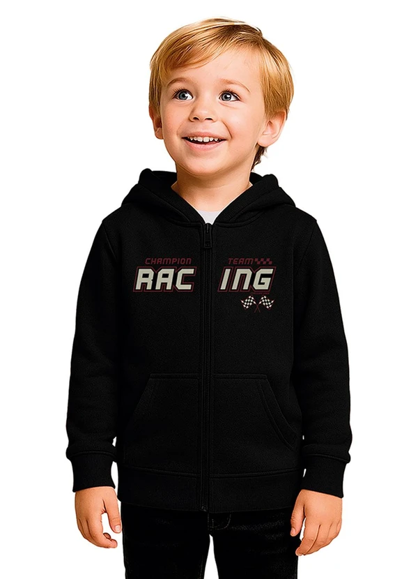 Malwee Kids - Jaqueta Racing em Moletom Preto
