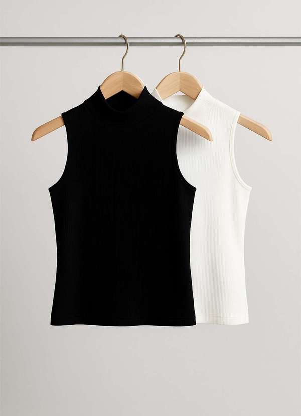 O Kit com 2 Regatas Caneladas Femininas é ideal para quem busca estilo, versatilidade e conforto. Com design moderno de gola alta e cava americana, o modelo valoriza a silhueta e traz um toque elegante para diferentes ocasiões.. Com shape justo e caimento perfeito, essas regatas podem ser usadas em produções casuais ou até em looks mais ousados, permitindo que você explore sua criatividade e crie combinações cheias de personalidade.. Confeccionadas em tecido canelado de alta qualidade, oferecem elasticidade, toque macio e resistência, garantindo conforto e durabilidade ao longo do dia.. Seja para o trabalho, passeio ou uma saída à noite, esse kit de 2 regatas femininas é um curinga indispensável no guarda-roupa.. . Confeccionado em tecido de alta qualidade. Modelo cava americana. Gola alta. Modelagem slim. . Medidas da modelo: Altura 1,70cm | Busto 88cm | Cintura 61cm | Quadril 92cm | Manequim 36. Modelo veste P. . Composição: 63% Poliéster, 34% Viscose, 3% Elastano CNPJ: 02.981.676/0001-39 País: Brasil Cuidado para conservação do produto: Pode lavar na máquina, processo normal. Temperatura máxima da base do ferro a 110°C.