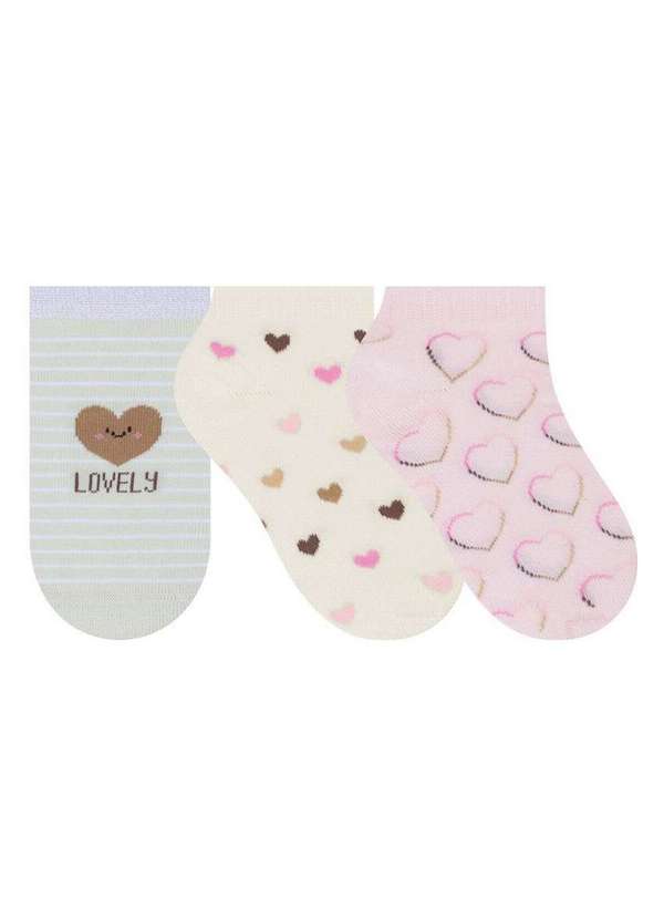 Selene - Kit 3 pares de Meias Infantil Cano Curto Selene 2315-001 999-Verde-Água-Mafim-Rosa-Chá