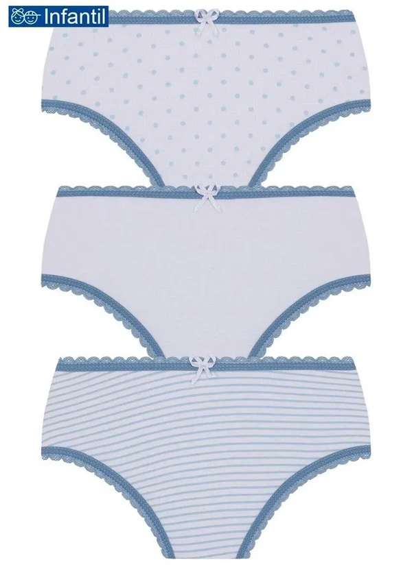Lupo - Kit com 3 Calcinhas Lobinha 18102-089 Infantil 0903-Azul-Branco