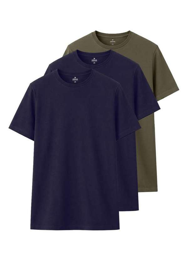 Hering - Kit com 3 Camisetas Masculina Hering 0201 Marinho-Verde