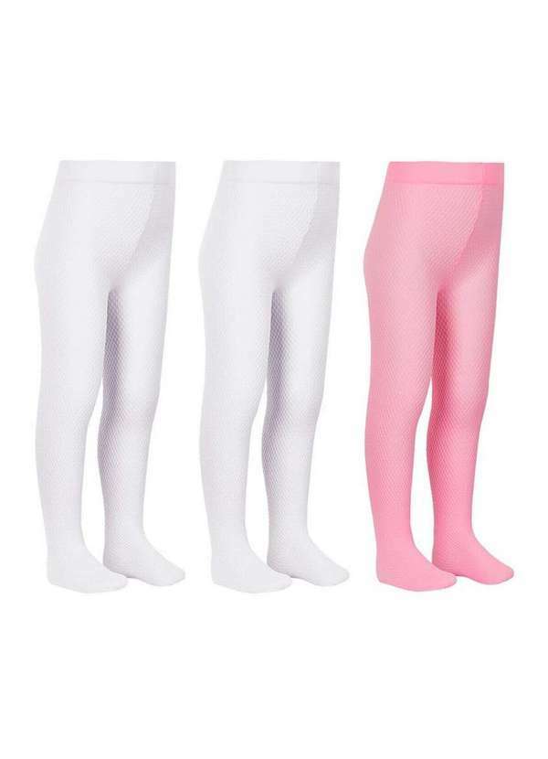 Lupo - Kit com 3 Meias Calças Bebê Fio 70 Cute Lobinha 2554-001 Branco-Rosa