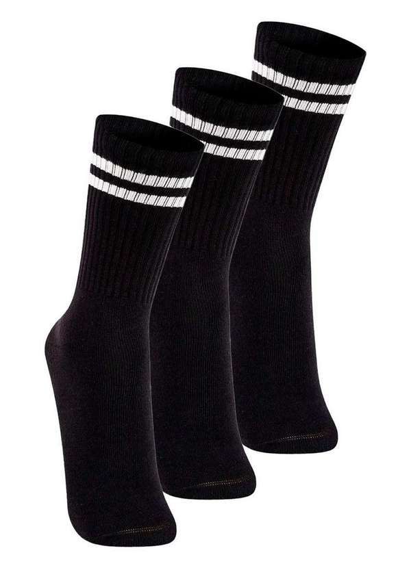 Características: Meias Esportiva Confeccionado em algodão com elastano Cano alto, ideal para compor looks atléticos e cheio de estilo Cano elástico para ajuste perfeito e conforto ao usuário Calcanhar verdadeiro, ajuste perfeito e maior conforto Cano: Longo Cores: Preto: Todas preto Marinho: Todas marinho Branco: Todas branco Preto/Marinho: 2 preto e 1 marinho Preto/Branco: 2 preto e 1 branco Marinho/Branco: 2 marinho e 1 branco Composição: 80% Algodão, 17% Poliamida e 03% Elastano