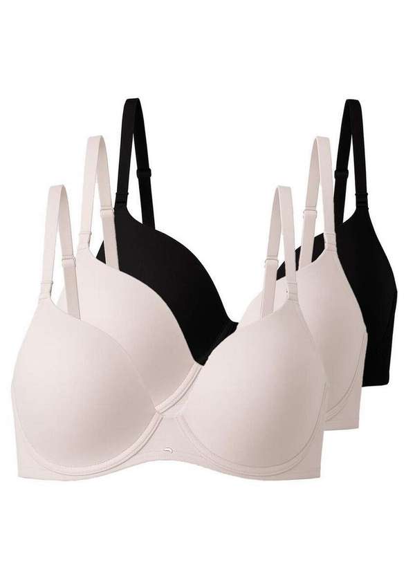 Liz - Kit com 3 Sutiãs com Aro e Bojo Push Up Liz 51805 Taça C Sepia-Preto