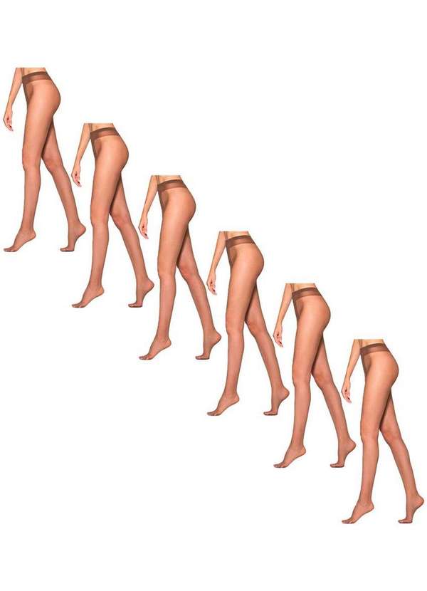 Lupo - Kit com 6 Meias Calças Fio 15 Essencial Loba 5770-002 Pó-De-Arroz