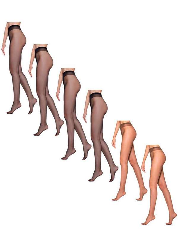 Lupo - Kit com 6 Meias Calças Fio 15 Essencial Loba 5770-002 Preto-Pó-De-Arroz