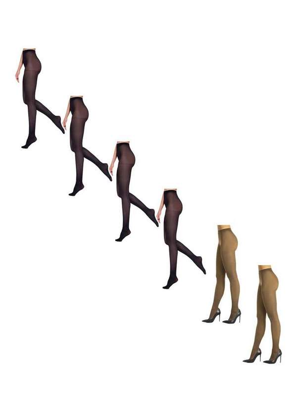 Lupo - Kit com 6 Meias Calças Fio 40 Opaca Loba 5830-001 Preto-Pó-De-Arroz