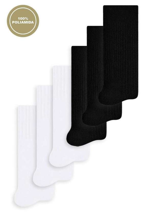 Selene - Kit 6 pares de Meias Infantil Cano Longo Selene 5010-002 Branco-Preto