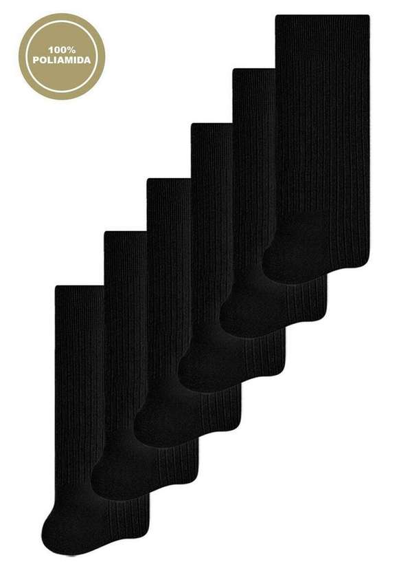 Selene - Kit 6 pares de Meias Infantil Cano Longo Selene 5010-002 Preto
