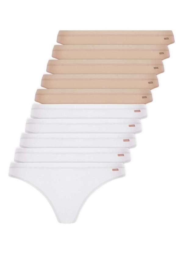 Lupo - Kit com 10 Calcinhas Tanga Loba 40354-001 Branco-Natural